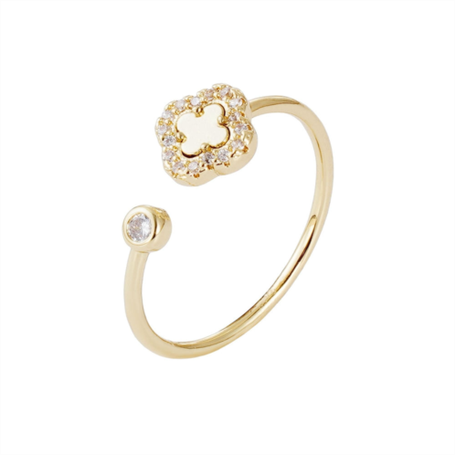Adornia Women's 14k Gold Plated CZ Open Band Clover Ring