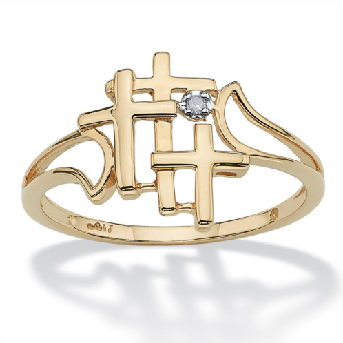 [US] PalmBeach Jewelry diamond accent solid 10k yellow gold triple cross ring