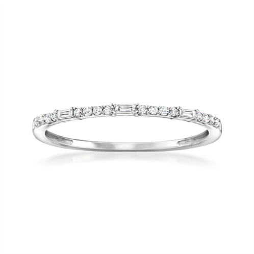 Ross-Simons is always looking for new ways to reinvent essential jewelry styles.Define your style with stack-and-layer essentials from our Pure Collection. Create the perfect look to show off your personality.We've got the dainty rings you dream about! Our 0.10 ct. t.w. round and baguette diamond ring is petite and slender, perfect for wearing solo or stacked. Crafted in polished sterling silver. 1/16' wide. Diamond ring. Each Ross-Simons item arrives in a fine jewelry presentation box. Shop Ross-Simons jewelry risk-free as all items include a 30-day, 100% money-back guarantee.