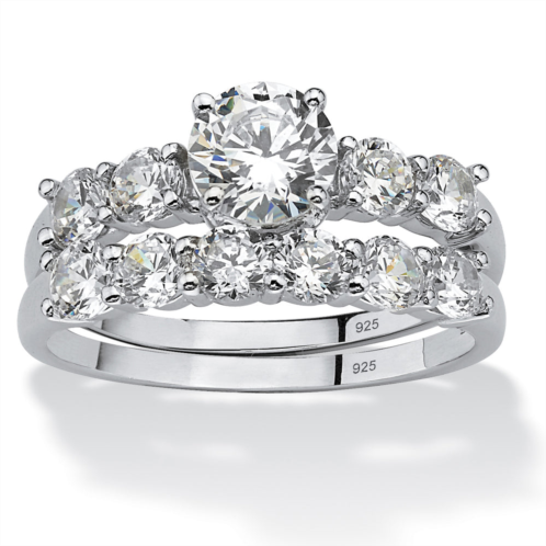 Wedding-worthy elegance. Luxurious round cubic zirconia two-piece wedding set is a brilliant fashion companion for all your happily-ever-afters. Dazzled with 2.50 carats T.W. of pretty sparkle. Platinum-plated sterling silver. Sizes 5-10. (All carat weights are approximate and may vary slightly from those listed.)