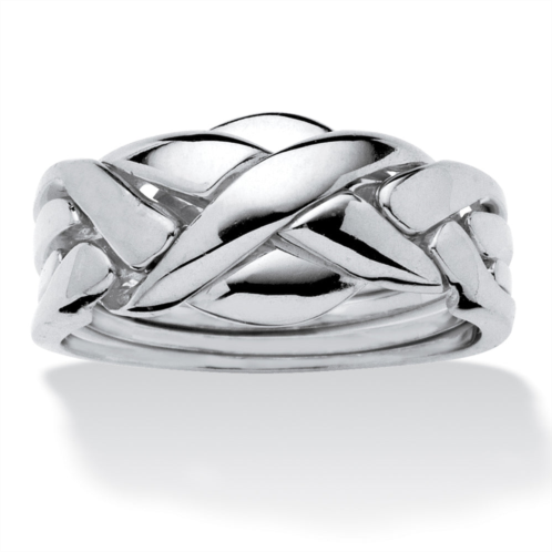 This fashionable update on a longtime favorite is uniquely elegant and fun at the same time. Puzzle rings symbolize commitment and love, and a perfect accent for style makers of any age who like to be distinct. Platinum-plated. Sizes 5-10. PLEASE NOTE - This is a puzzle ring and is extremely difficult to put back together. If you don't like challenges, please keep ring assembled!