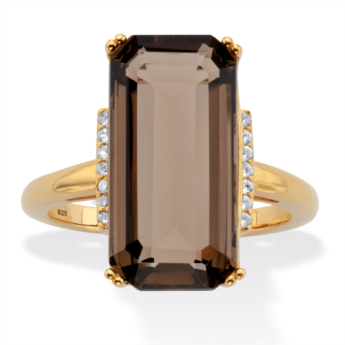 [US] Palm Beach Jewelry 11.64 cttw. emerald cut smoky and white quartz 18k gold-plated silver ring