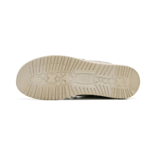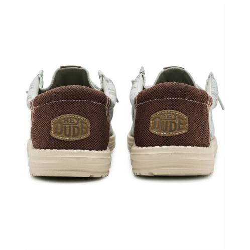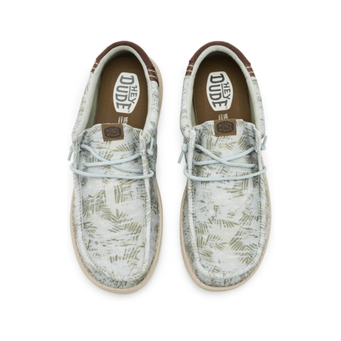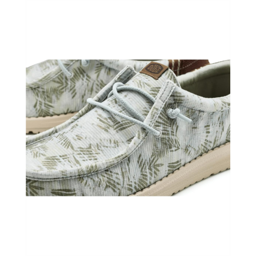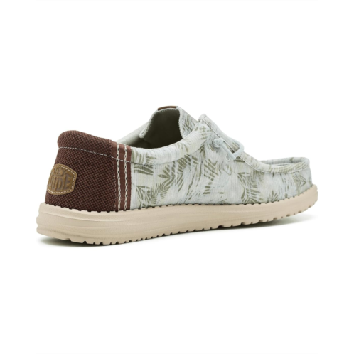 - Easy, breezy, textile makes the Hey Dude Wally Washed Palm shoes ready to roam. These slip-on sneakers are made of a removable, ethylene vinyl acetate insole and a cotton lining for go-to comfort. Their cotton upper is styled with an allover print and features easy-on elastic laces for a secure fit. These lace-up sneakers feature a Flex & Fold design that supports healthy feet with their unique shape, giving complete freedom of movement.