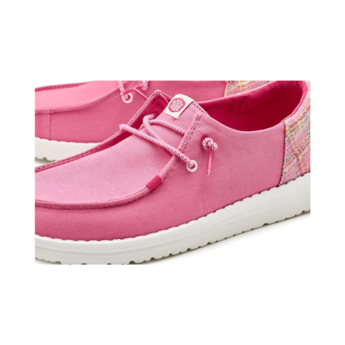 - Designed with a classic plaid pattern and lightweight construction, these easy Hey Dude Kids Wally Funk Prep Plaid slip-on shoes deliver comfort and cool style in one go. Flex & Fold technology supports healthy feet with its unique shape, giving complete freedom of movement. The lightweight polyester upper keeps feet cool while the ethylene vinyl acetate cushioned footbed ensures lasting comfort.