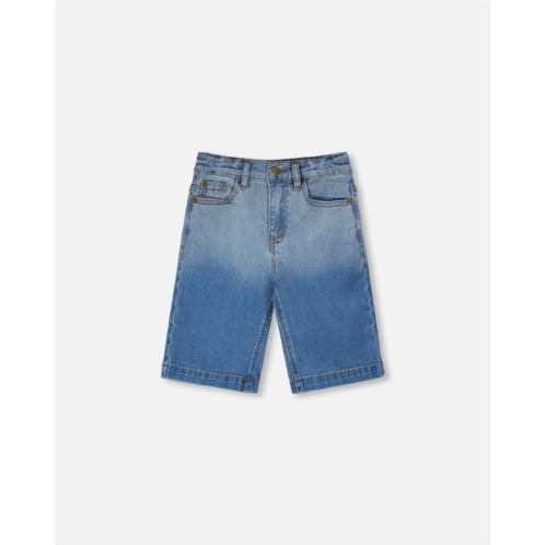 The stretch jean bermuda with a grey to blue gradient brings a cool twist to a timeless summer look. With their soft faded gradient from grey to blue, these bottoms give off a relaxed and stylish vibe. Designed with classic jean detailsfront pockets, belt loops, and a button closurethis stretchy denim bermuda ensures comfort and freedom of movement for boys on the go.