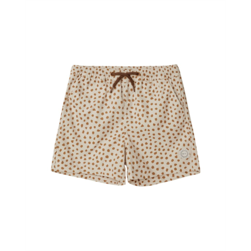Introducing the Rylee + Cru Collective Boardshorts for boys, perfect for a day at the beach or pool. These soft boardshorts feature an elastic waistband with adjustable drawstring and pockets for convenience. Made with 100% polyester, they are machine washable and imported for quality. The brown multicolor pattern adds a fun touch to any summer outfit. Stay protected from the sun in style with UPF 50+ swimwear from Rylee + Cru Collective.