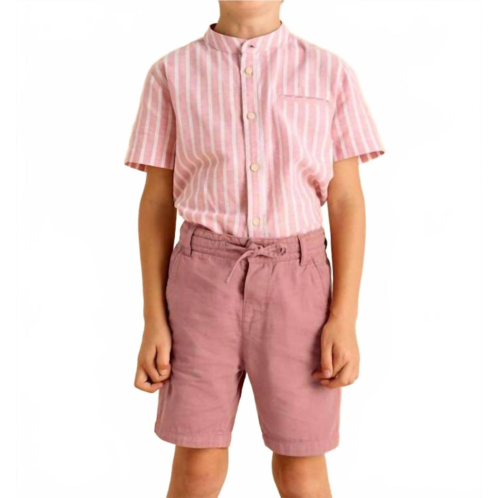 Introducing the Linen Bermuda Shorts by Mayoral, perfect for boys who embrace minimalist style. Crafted from a cotton-linen blend, these shorts feature a single button fastening with a drawstring and chino tailored accents, allowing them to seamlessly transition from day to night. Composition - 83% Cotton, 17% Linen. Care - Machine wash cold, do not bleach, hang dry, cool iron. Available in the vibrant guava hue, they're ideal for travel, particularly during spring and Thanksgiving gatherings.