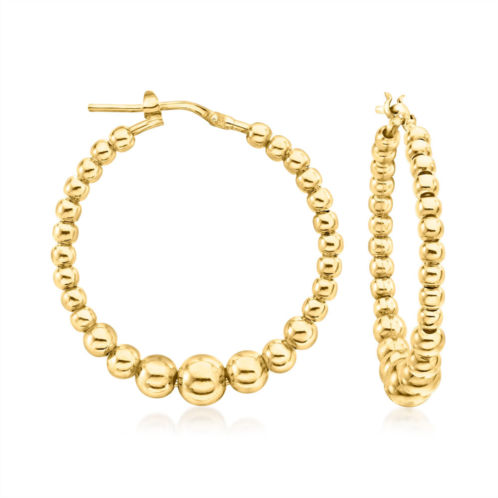 With a commitment to quality and affordability, Ross-Simons presents timeless jewelry for the modern woman. Bright and bubbly, these Italian-made hoop earrings shine with glossy, graduated 18kt yellow gold over sterling silver beads. Perfect for pairing with everything from blue jeans to your favorite little black dress. Length is 1 3/8'. Snap-bar, 18kt gold over sterling graduated bead hoop earrings. Each Ross-Simons item arrives in a fine jewelry presentation box. Shop Ross-Simons jewelry risk-free as all items include a 30-day, 100% money-back guarantee.