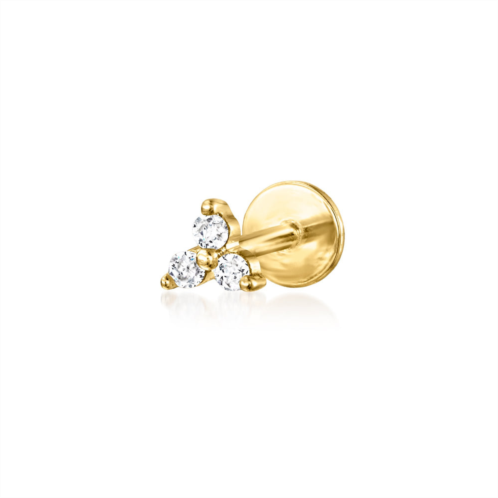 Developing fresh ways to wear timeless looks, Ross-Simons masters the classics.RS Pure. Modern designs that complete your outfit and complement your personality.Our dainty diamond-accented three-stone single stud earring is all sparkle and perfectly petite. Crafted in 14kt yellow gold, this simple pushpin style features a flat back that won't poke or jab while you're taking a quick nap or getting a full night of beauty sleep. Insert the backing first into a pierced ear, then slide the front post inside to secure. Designed for 24/7 wear, this easy earring is ideal for an active lifestyle and can be worn without worry during workouts, travel and all of your daily activities. Suitable for cartilage piercings. Diamond-accented three-stone single stud earring. Each Ross-Simons item arrives in a fine jewelry presentation box. Shop Ross-Simons jewelry risk-free as all items include a 30-day, 100% money-back guarantee.