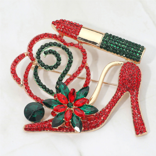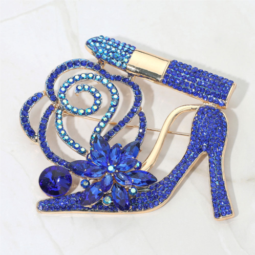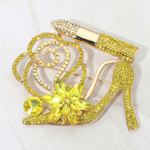 [US] FASHNZFAB rhinestone embellished flower accent glam high heel lipstick pin brooch
