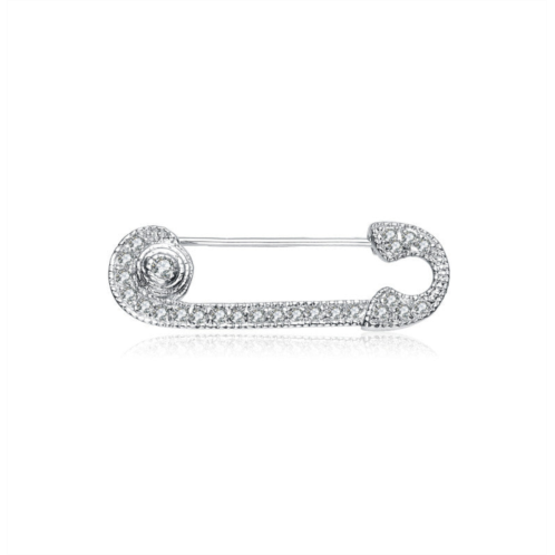 [US] Genevive sterling silver white gold plated with clear white cubic zirconia pin