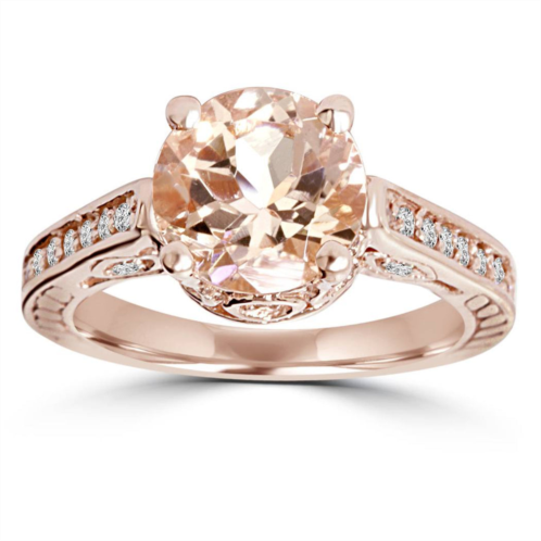 [US] Pompeii3 2 carat morganite & diamond vintage engagement ring 14k rose gold size selectable