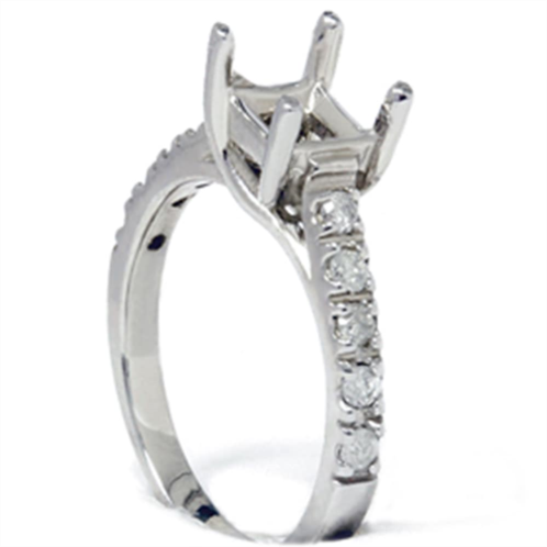 This diamond Semi Mount engagement ring can hold up to a 1ct Princess or square stone. Ten Round Brilliant cut natural diamonds are prong set in 14k white gold. Other sizes are available; email us for a quote. 1/4ct total diamond weight.
