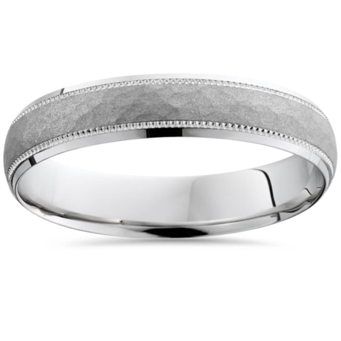 High quality 4mm 950 platinum wedding band. Band has a hammered finish with milgraining and a bright, high polished edge.