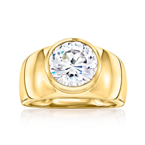 Ross-Simons is always looking for new ways to reinvent essential jewelry styles. More modern than your traditional solitaire style, this high-polished 18kt yellow gold over sterling silver band centers a 3.50 carat round brilliant-cut CZ in a sleek bezel setting. 3/8' wide. CZ ring.CZ weights are diamond equivalents.Each Ross-Simons item arrives in a fine jewelry presentation box. Shop Ross-Simons jewelry risk-free as all items include a 30-day, 100% money-back guarantee.