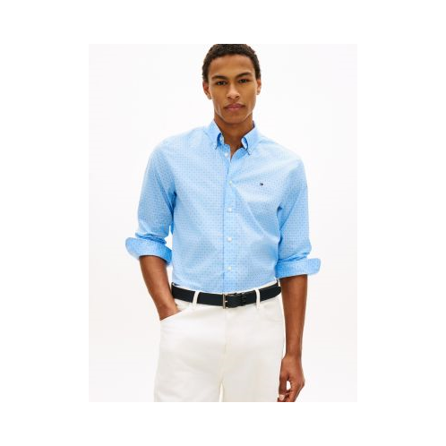 Tommy Hilfiger men's shirt. Our All-Day Shirt is crisp, soft and easy to iron (making life a lot easier). Finished in an allover geometric print, this button-down is cut in an easy fit and made from a stretch-cotton blend for comfort.