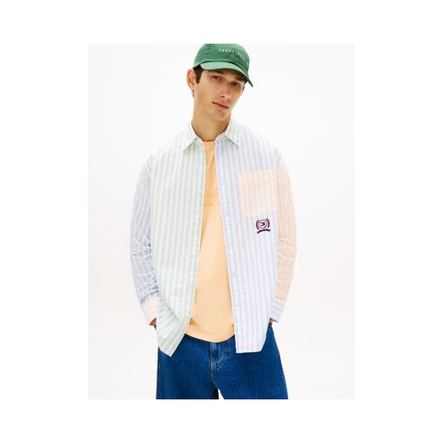 Tommy Hilfiger men's shirt. Add some variation to your button-up rotation with our breezy linen camp shirt, featuring an allover script monogram print for signature appeal.
