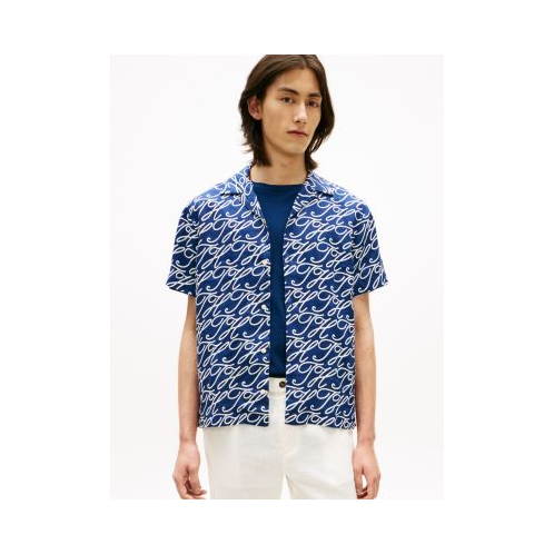 [US] TOMMY HILFIGER Allover Script Monogram Linen Camp Shirt