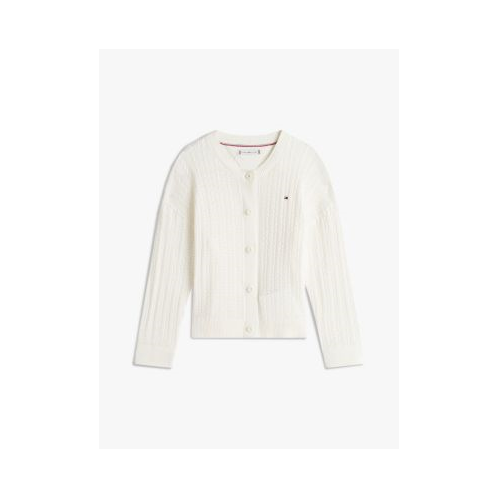 Tommy Hilfiger girls' sweater. Made from premium cotton and featuring a delicate pointelle design, this relaxed cable knit cardigan is the perfect layer for almost any outfit. Part of our Adaptive Collection, designed for ease of dressing in classic Tommy style.