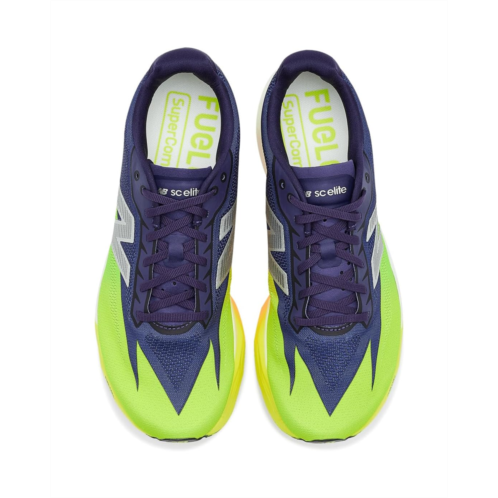 - The New Balance FuelCell SuperComp Elite v5 shoes are race day shoes designed for the moments when seconds really do count. Years of research went into perfecting these shoes, containing a FuelCell midsole made with PEBA. The propulsive feeling of FuelCell is combined with a thinner carbon fiber plate, offering superior energy return in a lightweight package. They are made of cotton insole and lining. These running shoes feature a FantomFit mesh upper that offers ultra-light bonded support. Their Energy Arc pairs sport-specific carbon fiber plate geometry with strategic midsole voids, designed to increase stored energy to deliver a higher amount of total energy returned. These lace-up shoes are designed with a rocker profile for a smooth, natural feeling transition from heel to toe.