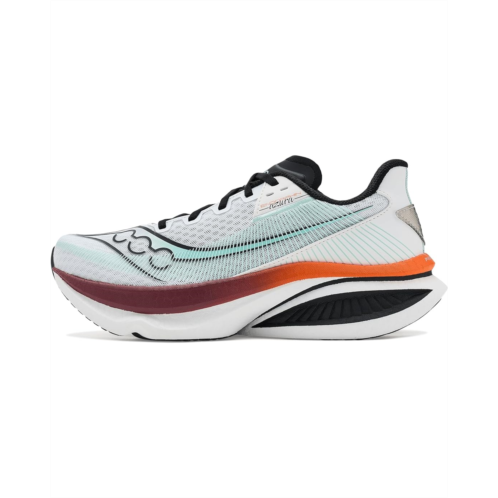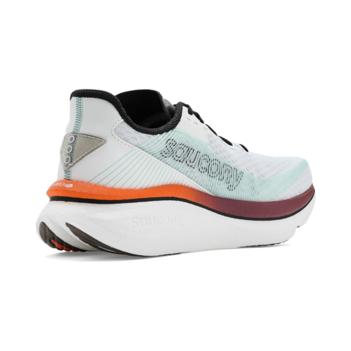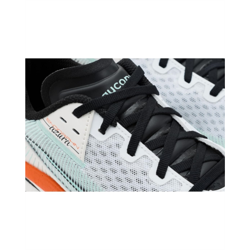 - With their bold design aesthetic, the Saucony Endorphin Azura shoes introduce a non-plated super foam experience to their Fast & Light category. Designed as high-performance daily trainers, these low-top shoes offer the perfect combination of a soft, bouncy ride for your daily miles, while delivering a responsive snap from the full PWRRUN PB midsole and SpeedRoll technology for when you pick up the pace. Relish the soft cushion of PWRRUN PB while you put in daily miles, and feel the power of the foam when it's time to pick up the pace. They are made of a leather upper, an Ethylene Vinyl Acetate insole, and nylon lining. A hallmark of the Endorphin series, these lace-up shoes are designed to enhance your transitions, creating a smooth, faster, and more efficient ride.