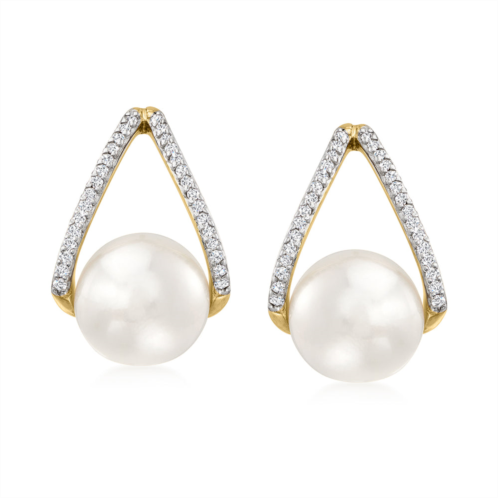 [US] Ross-Simons 8-8.5mm cultured pearl and . diamond drop earrings in 14kt yellow gold