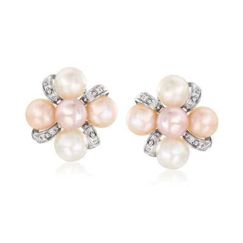 Ross-Simons is the authority on fashionable must-haves. Fabulously feminine earrings featuring 7-7.5mm white, pink and peach cultured freshwater button pearls in a floral-like motif. Accented with diamonds. Clip/post, sterling silver earrings. Each Ross-Simons item arrives in a fine jewelry presentation box. Shop Ross-Simons jewelry risk-free as all items include a 30-day, 100% money-back guarantee.
