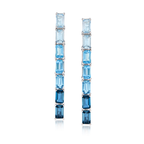 With a commitment to quality and affordability, Ross-Simons presents timeless jewelry for the modern woman. Take a dip into blue hues with these magnificent drop earrings. Fourteen emerald-cut sky, Swiss and London blue topaz gems, 4.00 ct. t.w., trail down in shades of blue from light to dark. Set in polished sterling silver. Hanging length is 1 1/2'. Post/clutch, sky, Swiss and London blue topaz drop earrings. Each Ross-Simons item arrives in a fine jewelry presentation box. Shop Ross-Simons jewelry risk-free as all items include a 30-day, 100% money-back guarantee.