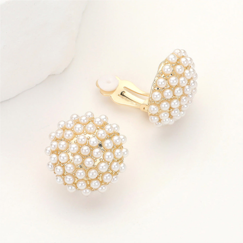Size - 0.9' X 0.9' Clip OnEnhance your style with these round pearl cluster clip-on earrings, featuring a dome-shaped design adorned with delicate pearls for a timeless look. Comfortable and versatile, they are perfect for adding sophistication to any outfit, from casual daywear to elegant evening ensembles.