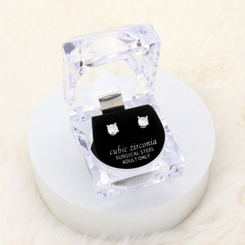 [US] FASHNZFAB 5mm round cut crystal cubic zirconia cz stud earrings with clear box