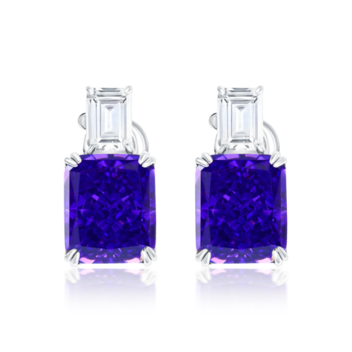 Introducing the exquisite Suzy Levian Sterling Silver Gala Firework Earrings, a stunning addition to any jewelry collection. These earrings feature an eye-catching design with a large emerald cut purple cubic zirconia complemented by a brilliant emerald cut white cubic zirconia, all elegantly set in high-quality sterling silver. Each piece is not just a fashion statement; it carries a deeper message of empowerment for women, as a hidden pink cubic zirconia is cleverly placed at the back of each earring, symbolizing inner strength and beauty. Designed with a sophisticated two-tone setting that showcases Suzy Levian's signature SL logo, these earrings are both stylish and meaningful. With their secure lever back closure, they promise a snug fit for comfortable wear. Elevate your outfit and inspire confidence with these breathtaking earrings, perfect for any occasion. Earring dimensions - 20mm x 11mm x 9mm.