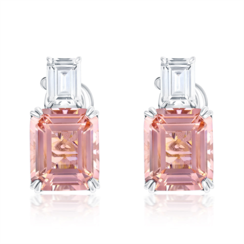 [US] SUZY LEVIAN sterling silver gala emerald cut pink & white cubic zirconia earrings