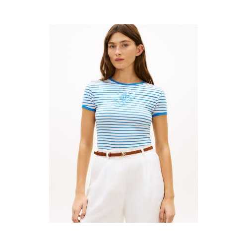 Tommy Hilfiger women's T-shirt. Our embroidered script monogram adds an elevated touch to this striped ringer tee. Made from a lightweight stretch-cotton blend, it's an easy, comfortable layer.