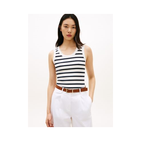 Tommy Hilfiger women's tank top. Made from ribbed cotton with ample stretch, our sleeveless top is a comfortable wardrobe staple. With its simple, clean lines and versatile stripe design, you can pair it with anything, from relaxed denim to a preppy mini skirt.