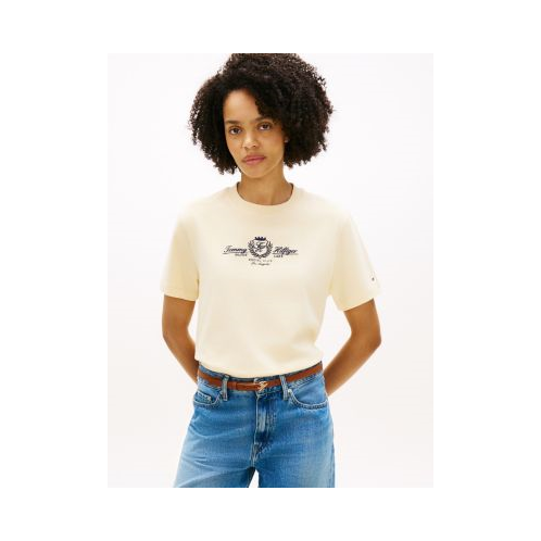 Tommy Hilfiger women's T-shirt. Our embroidered club crest logo tee is made from durable heavyweight cotton jersey that offers a structured look. Even better, it stands up to wear and tear and is less likely to wrinkle.