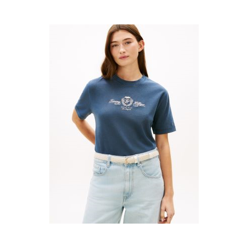 Tommy Hilfiger women's T-shirt. Our embroidered club crest logo tee is made from durable heavyweight cotton jersey that offers a structured look. Even better, it stands up to wear and tear and is less likely to wrinkle.