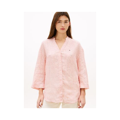Tommy Hilfiger women's shirt. Our collarless pullover shirt is made from yarn-dyed linen for rich color and a breathable feel. Cut in a relaxed fit, it is an effortless essential for both weekdays and weekends.
