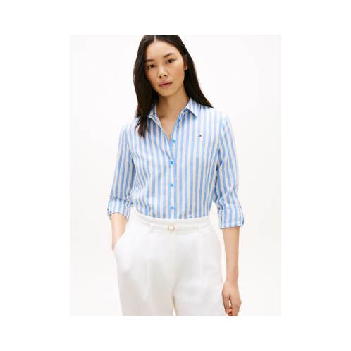 Tommy Hilfiger women's shirt. Made from a lightweight and breathable linen-viscose blend, our relaxed shirt is perfect for the warmer months of the year. Finished with roll-tab cuffs and versatile stripes, it's fits seamlessly into your button-up rotation.