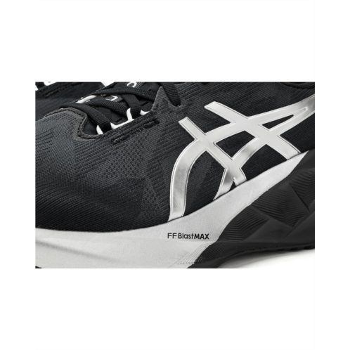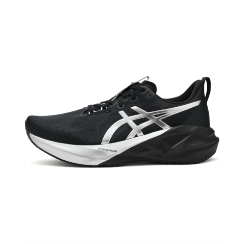 - The ASICS Novablast 5 Platinum running shoe's midsole and outsole geometry help produce an energized ride. Their FF BLAST MAX cushioning helps create softer landings and a more energized toe-off during your training. These low-top shoes are made of a breathable, engineered mesh polyester upper that helps reduce the need for additional overlays. At least 50% of the shoe's main upper material is made with recycled materials to reduce waste and carbon emissions. The sockliner is produced with the solution dyeing process that reduces water usage by approximately 33% and carbon emissions by approximately 45% compared to the conventional dyeing technology. These running shoes are designed with a polyester insole and lining for all-day comfort. A tongue wing construction in the upper helps improve the fit while reducing tongue movement. These lace-up shoes are a part of the PLATINUM collection and are designed with premium and sophisticated styling. They feature silver cutting welder details on the ASICS Stripes logo and silver spray accents on the midsole for a premium finish.
