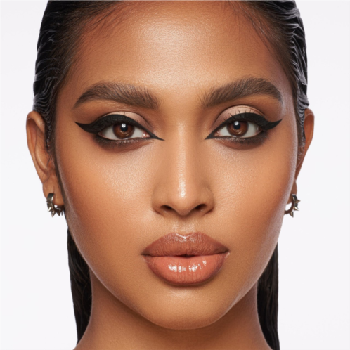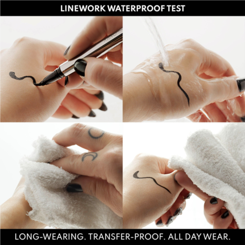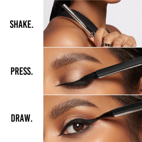 What it is: A waterproof, smudgeproof, intense black, demi-matte fluid liner with an optimized paintbrush tip for easy application and maximum control.