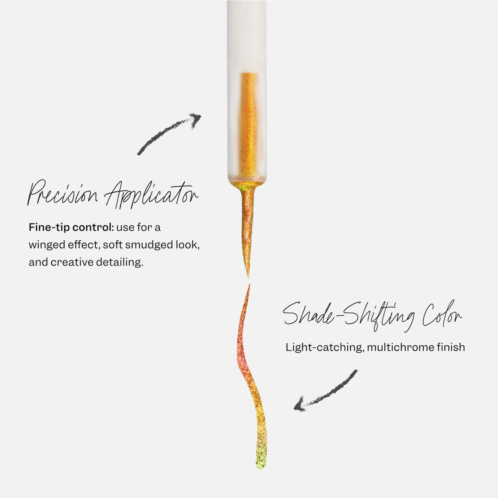 What Else You Need to Know: A flicker of magicthis liquid chrome eyeliner is infused with multichrome pigments for a light-catching, mesmerizing look. The 16-hour formula glides on with ultrafine precision to create subtle accents or bold, graphic lines inspired by nature’s shifting light.