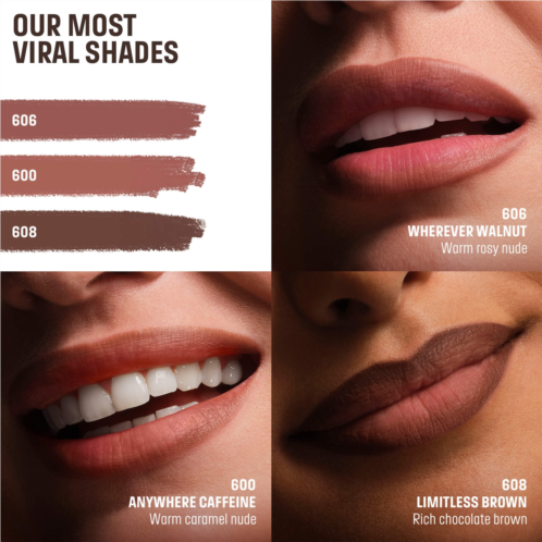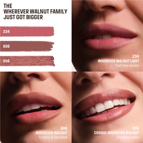 What Else You Need to Know: The creamy, soft-matte texture blends easily and feels weightless on lips. The precise tip guarantees perfect definition and a smooth application with no feathering. Add a subtle sparkle to your favorite nudes with new shimmery finishes in the same comfortable, multiuse formula.