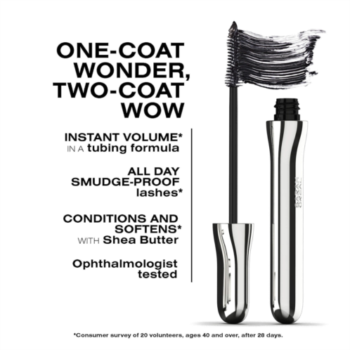 What Else You Need to Know: Meet the one-coat-wonder, two-coat-wow mascara. This buildable, black, tubing formula delivers smudge-proof lashes with immediate volume and definition and all-day staying power. Clinically shown to last 12 hours, it stays in place without smudging and then gently glides off with warm water.