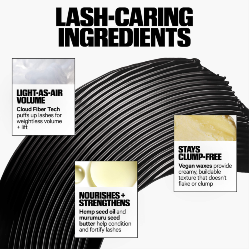 - Weightless Cloud Fiber Tech: Cloud-like fibers puff up lashes for light-as-air volume and lift that lasts.