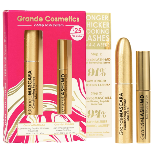 What Else You Need to Know: The 2-Step Lash System starter kit by Grande Cosmetics features a four-week trial size GrandeLASH-MD Lash Enhancing Serum and a travel-size GrandeMASCARA Conditioning Peptide Mascara. These two must-have lash essentials help to promote the appearance of longer-, thicker-, and healthier-looking lashes.