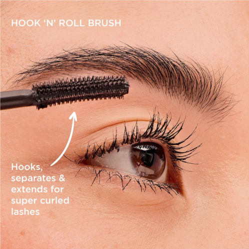 A mascara inspired by hair rollers, this super-curling and lifting mascara gives a sexy, wide-eyed look. Its patent-pending Hook ‘n’ Roll brush features tiny custom-designed hooks to catch, lift, and curl even short and straight lashes.