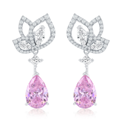 Discover the exquisite beauty of the Suzy Levian Sterling Silver Yellow Pear Shape Drop Earrings. These opulent earrings feature a stunning pear-shaped canary yellow cubic zirconia, elegantly suspended from a floral cluster adorned with multi-cut round, marquise, and square-cut white cubic zirconia, all set in radiant sterling silver. Designed for women who appreciate both style and empowerment, these earrings carry a hidden pink cubic zirconia at the back, symbolizing inner strength and beauty. The earrings are complemented by a fancy gallery design showcasing Suzy Levian's iconic SL logo, and secure comfortably with a butterfly push back closure. Elevate your jewelry collection with this breathtaking accessory that enhances any outfit, making a statement wherever you go. Earring dimensions are 35mm x 15mm x 5mm.