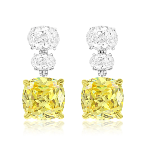 [US] SUZY LEVIAN sterling silver gala firework cushion cut yellow & oval white cubic zirconia drop earrings