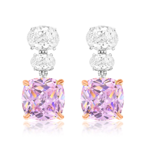 Discover the exquisite beauty of Suzy Levian Sterling Silver Drop Earrings, featuring a stunning combination of large firework cushion cut yellow cubic zirconia and firework oval cut white cubic zirconia. Crafted from high-quality sterling silver, these earrings showcase a unique two-tone setting adorned with pave white cubic zirconia on the back gallery, highlighting the iconic Suzy Levian SL logo. Designed to empower women, each earring includes a hidden pink cubic zirconia that symbolizes inner strength and beauty. With a secure butterfly push back closure, these earrings are perfect for any occasion, effortlessly elevating your outfit. Measuring 27mm x 12mm x 9mm, these opulent earrings are a must-have accessory for the modern woman.