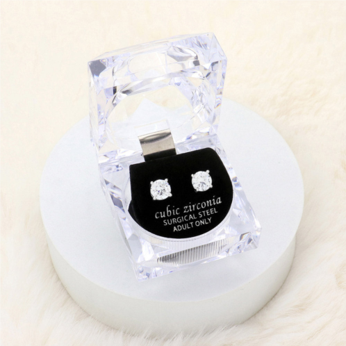 [US] FASHNZFAB 7mm round cut crystal cubic zirconia cz stud earrings with clear box - silver